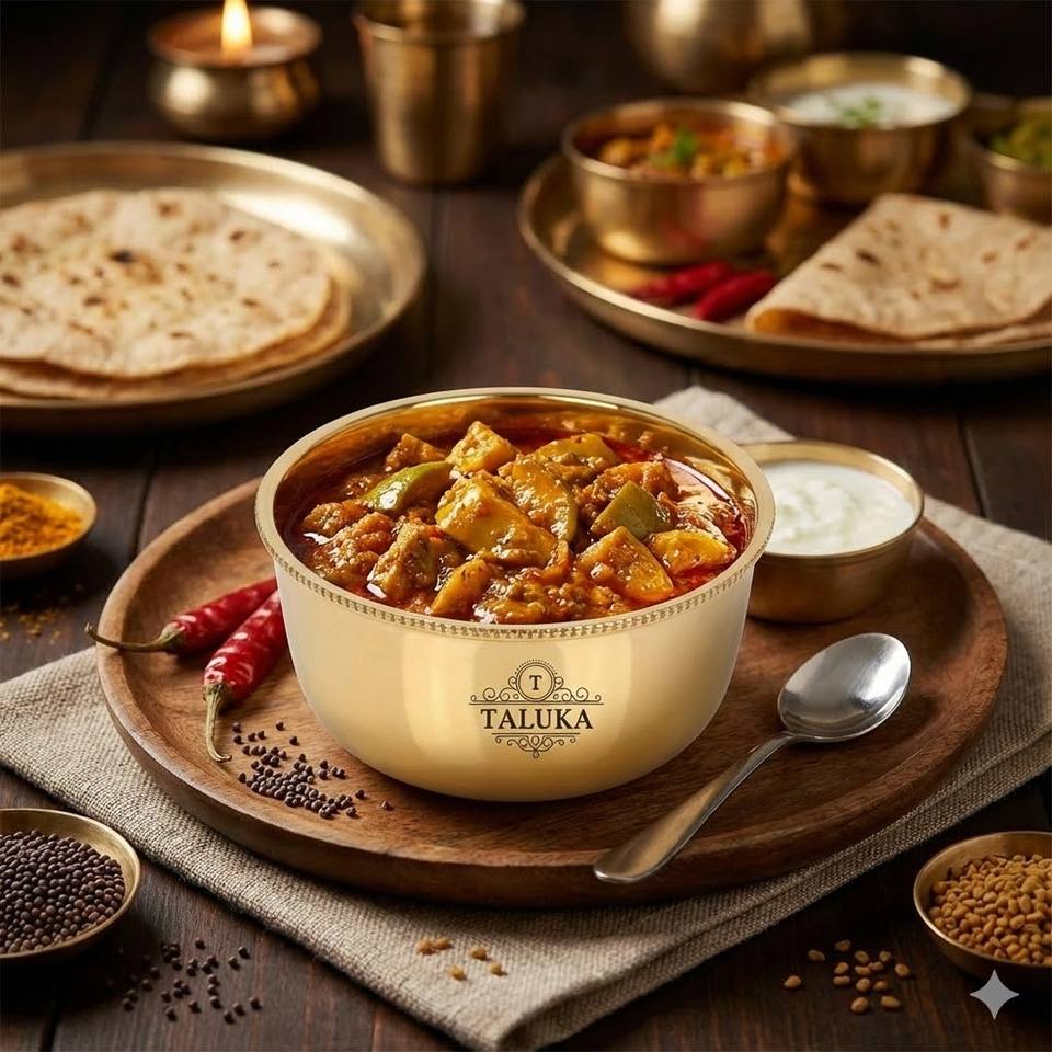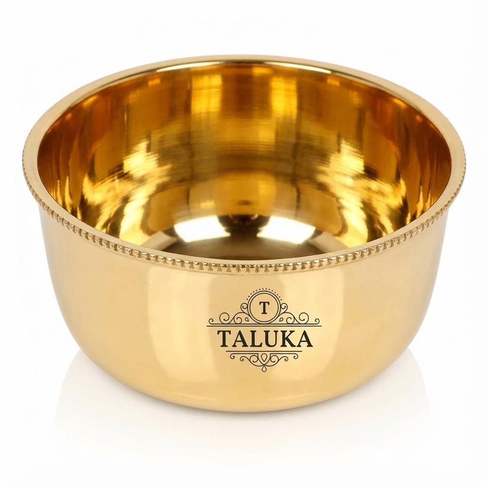 ชามทองเหลืองแท้แบบอินเดีย สำหรับเสิร์ฟ ใส่อาหาร มอบเป็นของขวัญ ขนาด 12 ออนซ์ ชามทองเหลืองโบราณ