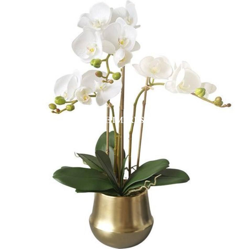 กระถางปลูกดอกไม้ประดิษฐ์สำหรับสวนทำมือแบบวินเทจอองเหลืองทึบชุบโครเมียมทนทาน