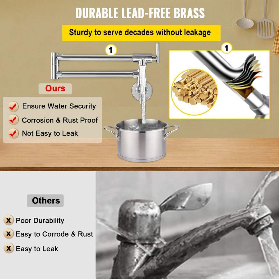 ก๊อกน้ำทองเหลืองสำหรับใช้กับเตาในห้องครัวงานพาณิชย์ก๊อกน้ำสีทองขัดเงาก๊อกน้ำหม้อบรรจุทองข้อต่อสวิงสองชั้นจับ2ข้างติดผนัง