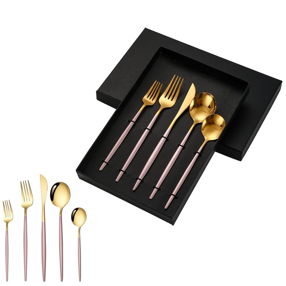 Solid Brass Flatware Cutlery Set of 5 for Kitchen Home Hotel Mirrored steel at Reasonable Price Flatware Dinner Set