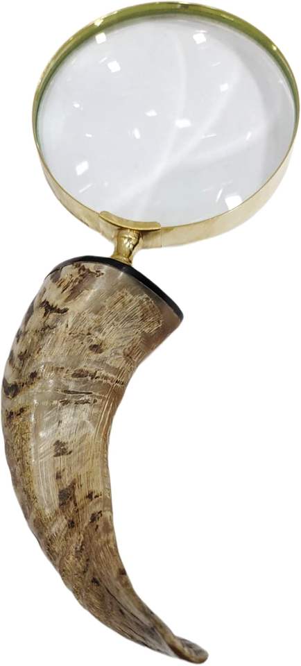 แว่นขยายงานหัตถกรรมทองเหลืองแบบธรรมชาติพร้อมด้ามจับเขาควายที่สง่างาม