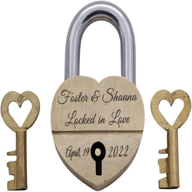 ล็อคทองเหลืองส่วนบุคคลรูปหัวใจล็อครักล็อคสลักล็อคด้วยคำสั่งที่กำหนดเองเป็นของขวัญที่น่ารักสำหรับที่พิเศษ