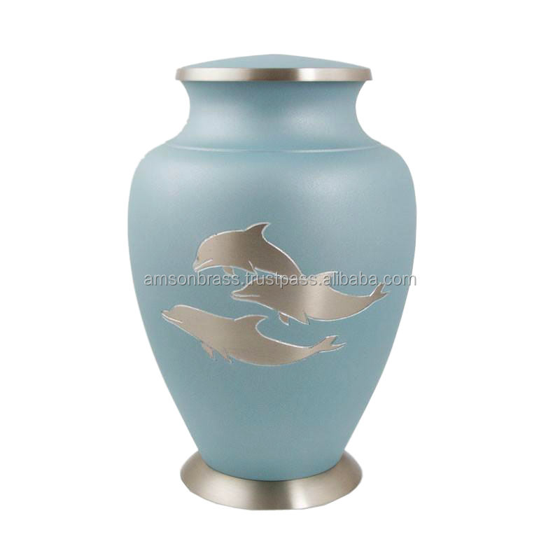 โกศทองเหลืองแข็งสำหรับใส่เถ้ากระดูกของช่างฝีมือชาวอินเดียแกะสลักด้วยมือ