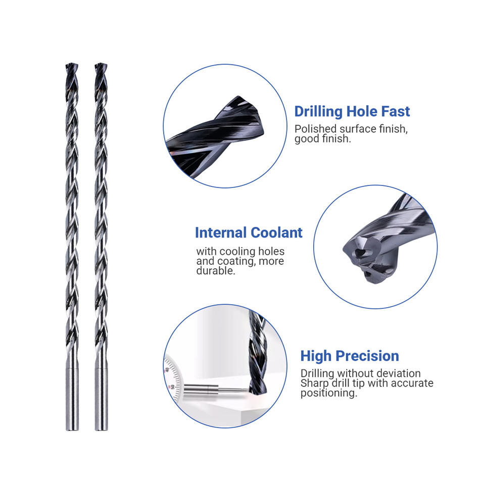Solid Carbide Deep Hole Drill Straight Shank Internal Cooling 2 Flutes HRC55 High Hardness Wear Resistant