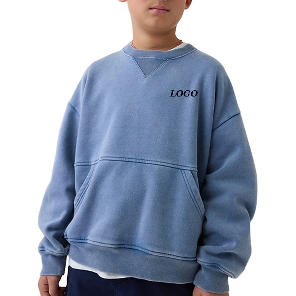 เสื้อสเวตเชิ้ตเด็กผู้ชาย คอกลม แขนยาว สีพื้น ตะเข็บคุณภาพสูง ทรงหลวม ไหล่ตก ราคาประหยัด
