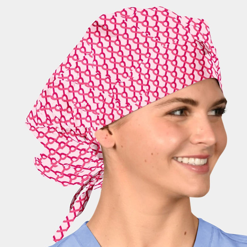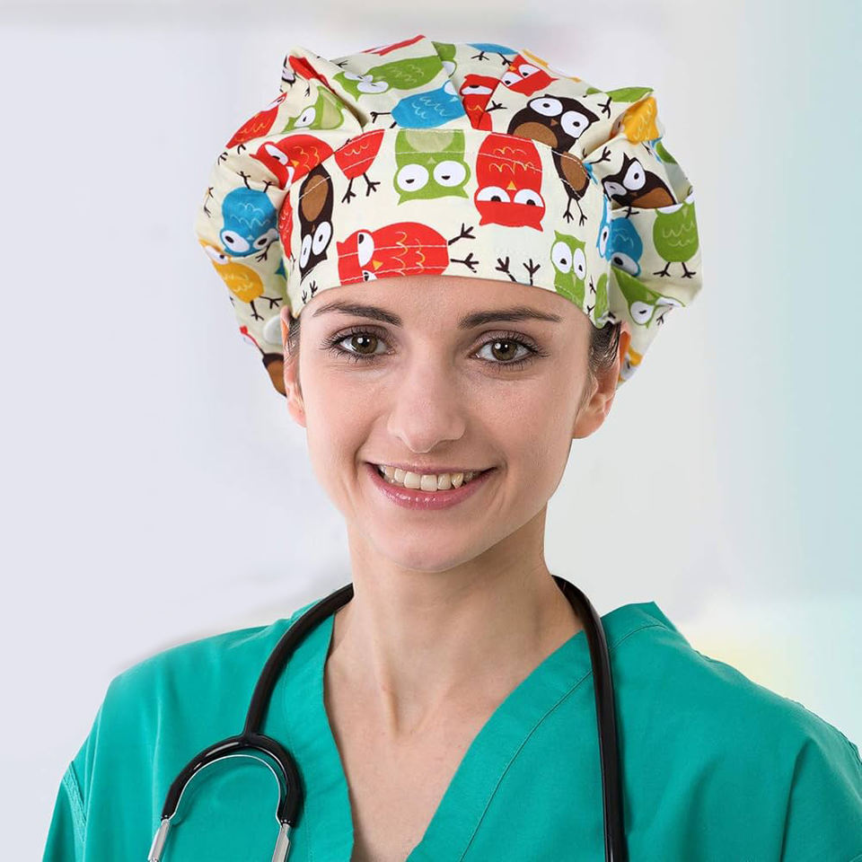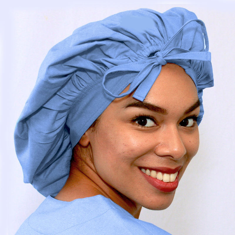 หมวกสครับสำหรับผู้หญิงผมยาวทรงบูฟี่มีกระดุมพิมพ์โลโก้แบบออกแบบได้ตามต้องการ