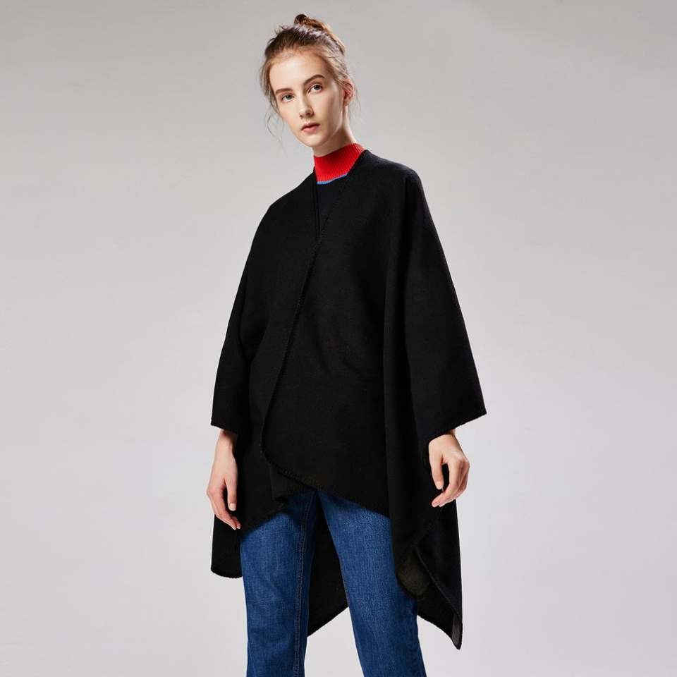 Color:Solid Tassel Strap Shawl Black,