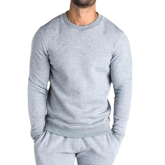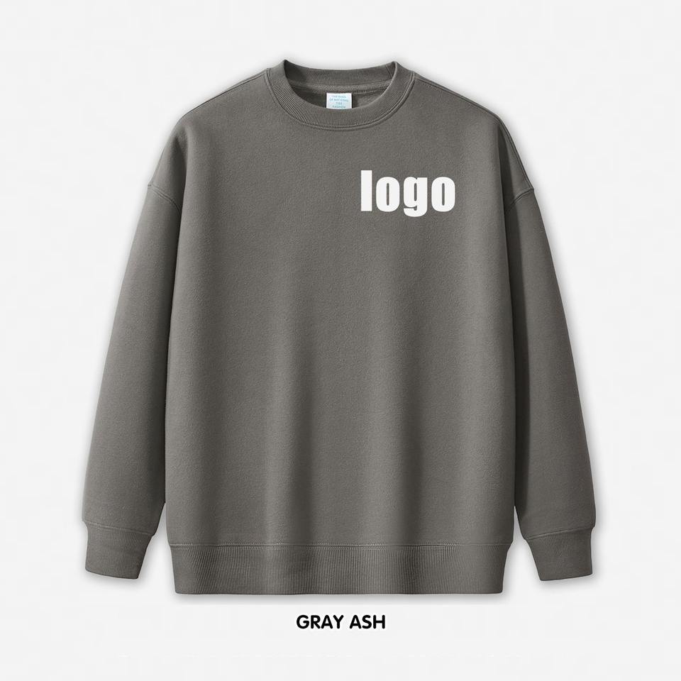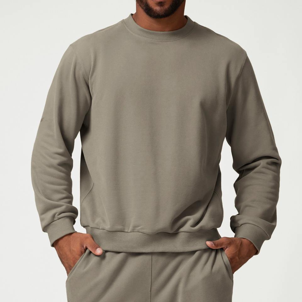 สเวตเชิ้ตคอกลมแขนยาวสำหรับผู้ชายสเวตเชิ้ตลำลองโอเวอร์ไซส์สีพื้น