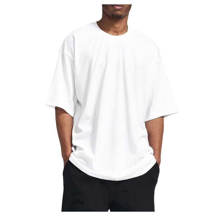 เสื้อยืดสำหรับผู้ชายเสื้อยืดผ้าฝ้ายออร์แกนิคทรงโอเวอร์ไซซ์สีทึบงานปักลาย DTG สำหรับผู้ชาย