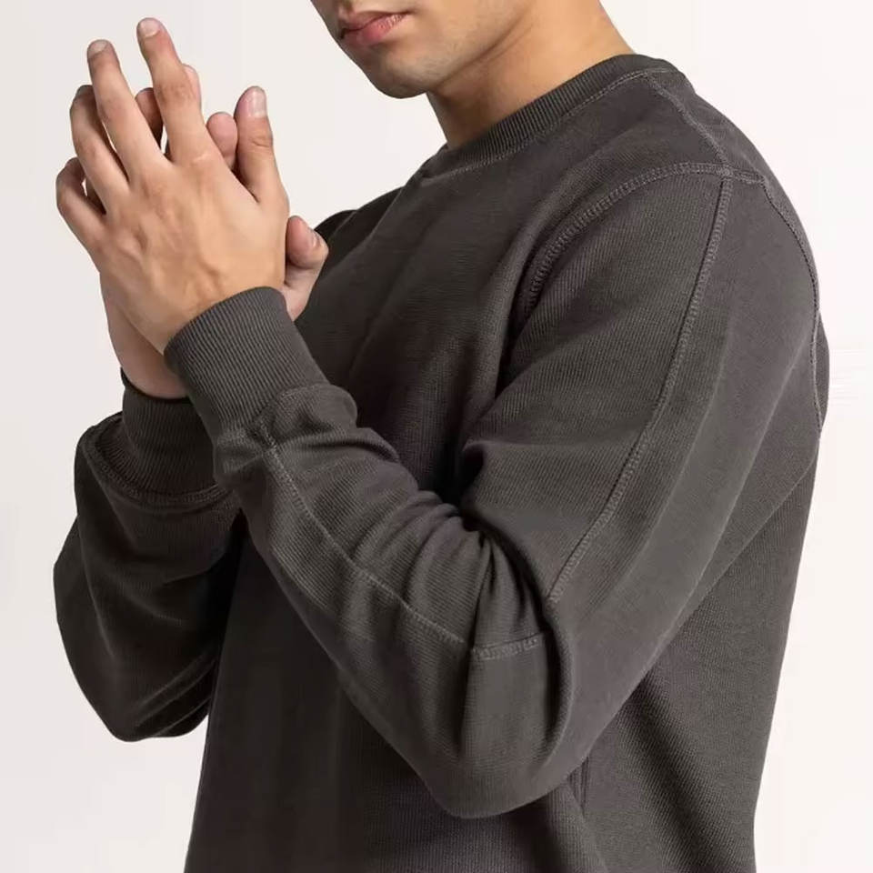 เสื้อสเวตเชิ้ตผู้ชายลายพิมพ์ดิจิทัลสีพื้น ผ้าถักนุ่ม สวมใส่สบาย รับสกรีนโลโก้ ทรงลำลอง