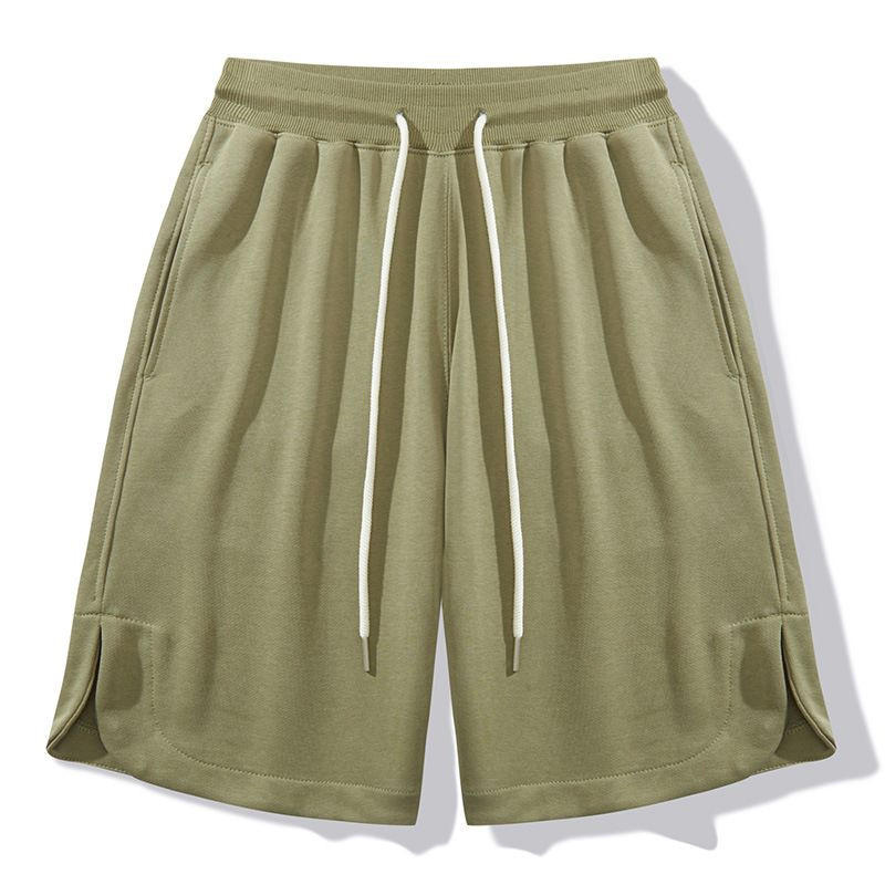 กางเกงขาสั้นผู้ชายผ้าฝ้าย 100% สีพื้น เอวยางยืด มีเชือกผูก ใส่สบาย สไตล์ลำลอง พร้อมโลโก้ด้านหน้า