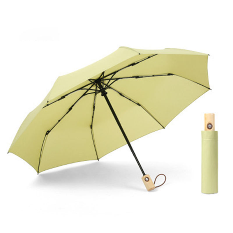 ร่มพับสีพื้นสำหรับทั้งชายและหญิง รับสกรีนโลโก้ ใช้ได้ทั้งวันแดดและวันฝน ลายป่า ด้ามไม้ อัตโนมัติเต็มรูปแบบ