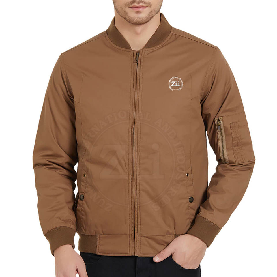 แจ็คเก็ตบอมเบอร์ผู้ชายคุณภาพสูง ผ้าแคนวาส คอตั้ง สีพื้น ซิปเต็มตัว น้ำหนักเบา สวมใส่สบาย สภาพใหม่