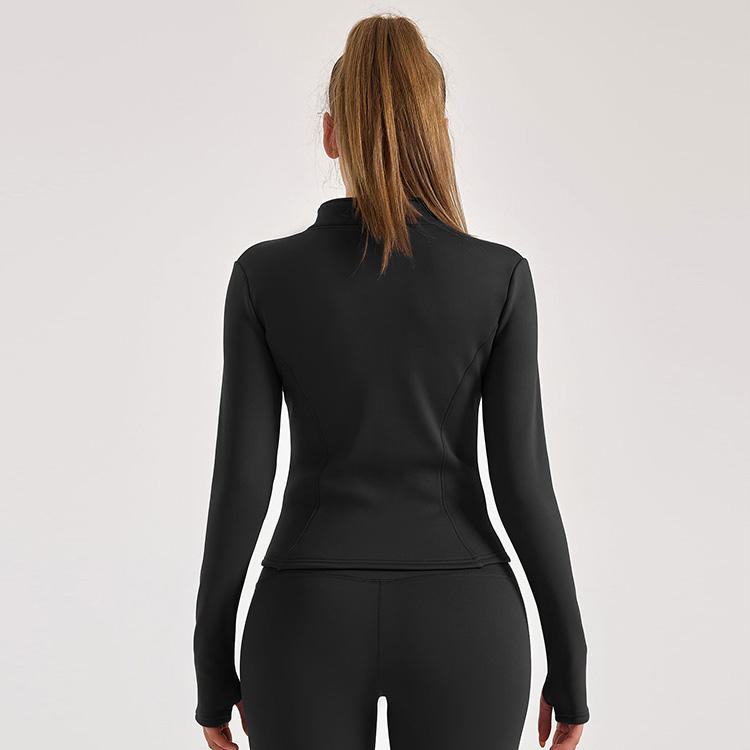 เสื้อแจ็คเก็ตออกกำลังกายสีพื้น มีกระเป๋า เหมาะสำหรับโยคะและออกกำลังกายตอนเช้า สีขาว แห้งเร็ว ทรงเข้ารูป