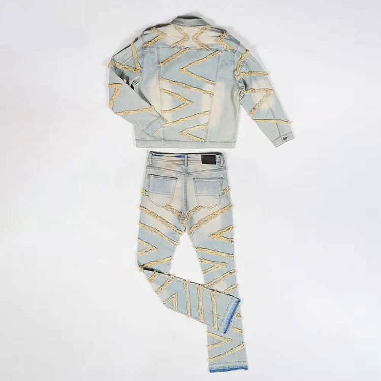 คำหลัก:ชุดเซ็ตเสื้อแจ็กเก็ตยีนส์และกางเกงยีนส์สำหรับผู้ชาย