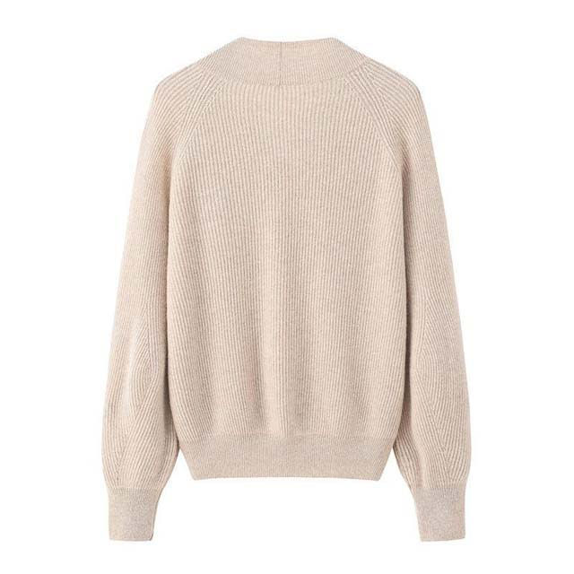 เสื้อสเวตเตอร์คอวีสีพื้นทรงหลวมสำหรับผู้หญิง เสื้อไหมพรมเนื้อนุ่มทรงโอเวอร์ไซส์ เสื้อจัมเปอร์คุณภาพสูง ขายส่งเสื้อสเวตเตอร์ผู้หญิง