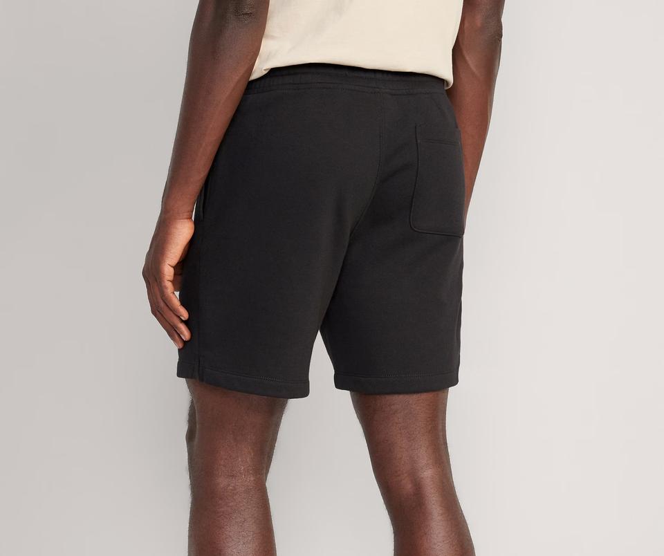 กางเกงขาสั้นผู้ชายสีพื้นผ้าฝ้ายเทอร์รี่มีเชือกผูกเอว เหมาะสำหรับใส่เล่นน้ำชายหาดหรือเล่นกีฬา