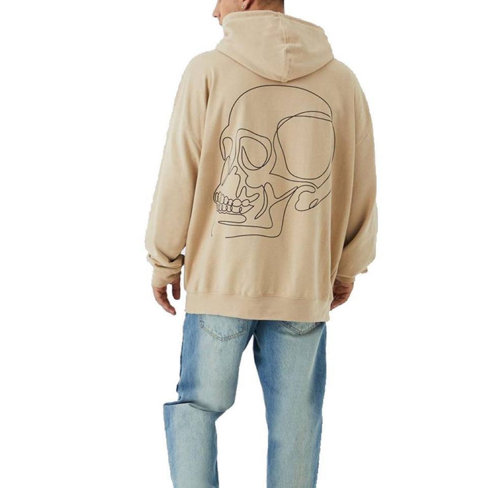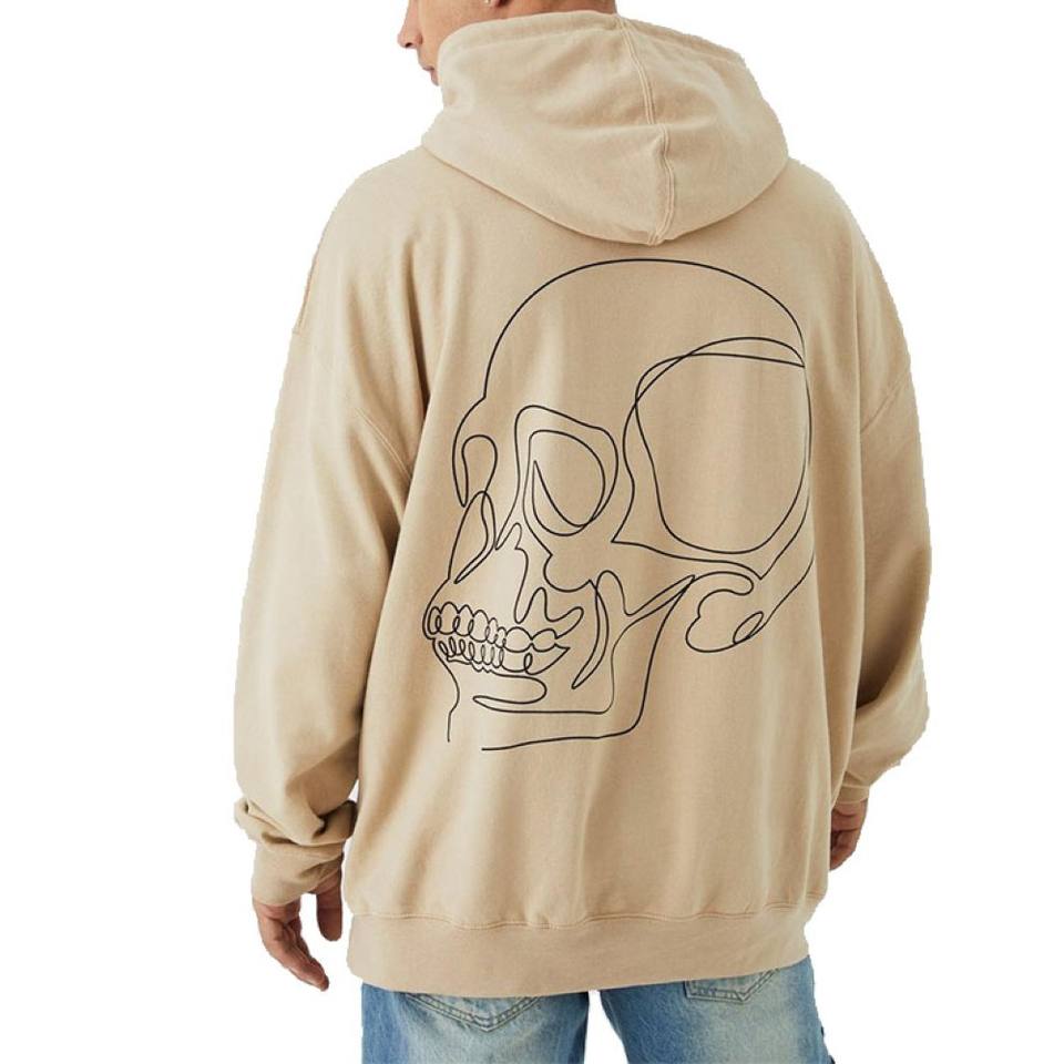 เสื้อมีฮู้ดสีกากี500 GSM วินเทจสำหรับผู้ชายพิมพ์ลายแอบสแตรกต์ลายเส้นโครงกระดูกแบบธรรมดามีฮู้ดผ้าฝ้ายรักษาอุณหภูมิ