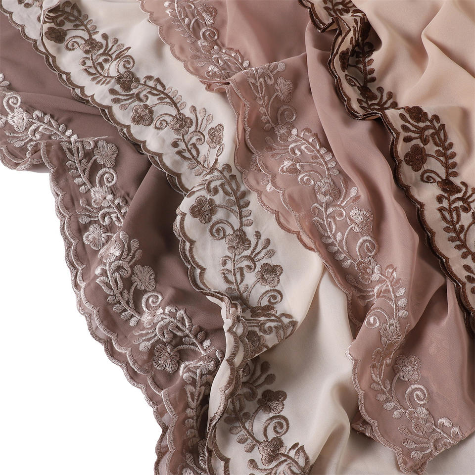 ผ้าคลุมไหล่ยาวผ้าชีฟองสีพื้น แต่งขอบลูกไม้ปักลายใบโคลเวอร์สี่แฉก เนื้อผ้าบางเบา ระบายอากาศได้ดี สำหรับผู้หญิง ใช้ได้ทุกฤดู