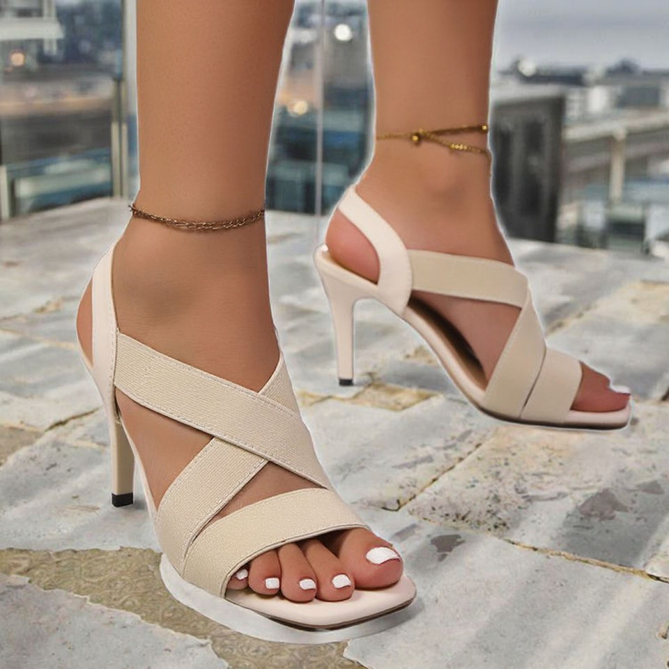 รองเท้าส้นเข็มแบบไม่สมมาตรบางดีไซน์พิเศษสำหรับผู้หญิง