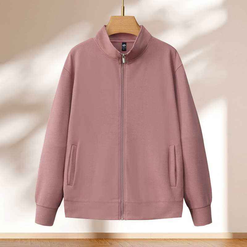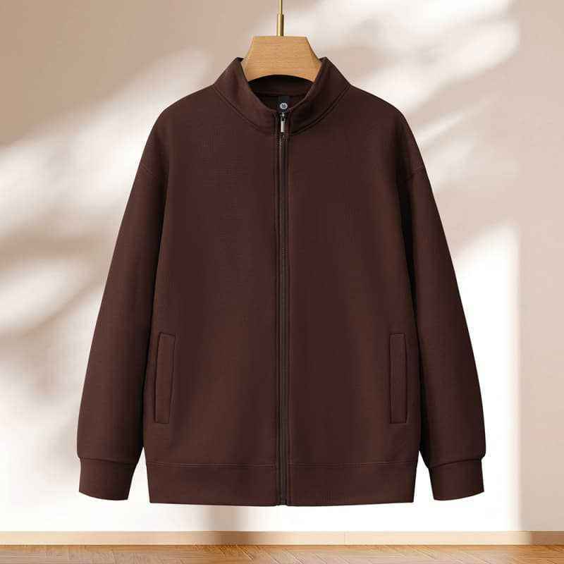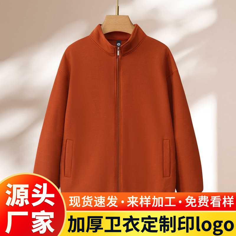 เสื้อสเวตเชิ้ตคอปกซิปสีพื้น ผ้าโพลีเอสเตอร์หนา ชุดทำงาน ชุดยูนิฟอร์มฤดูใบไม้ร่วง พิมพ์โลโก้ตามสั่ง