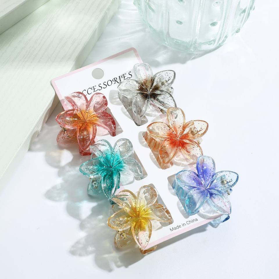 กิ๊บติดผมสีพื้นแบบด้าน 6 ชิ้น/ชุด กิ๊บเล็กสำหรับผู้หญิงและเด็กผู้หญิง แฟชั่นกิ๊บดอกไม้ใสสไตล์ฮาวาย อุปกรณ์ตกแต่งผม