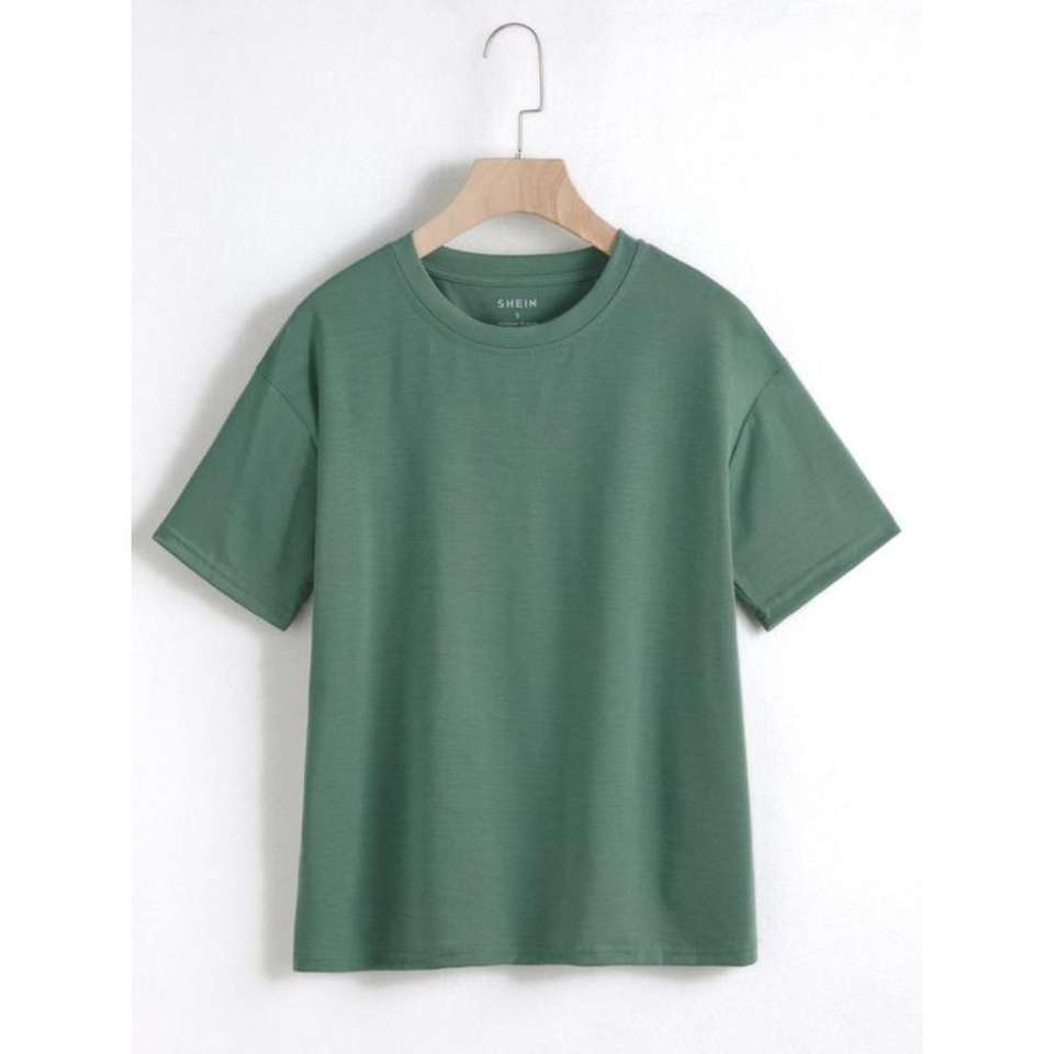 เสื้อยืดคอกลมแขนสั้นสีฟ้าทรงพอดีตัวเสื้อยืดผ้าฝ้ายแท้สำหรับชายและหญิงเสื้อยืดเข้ายิมสีล้วน