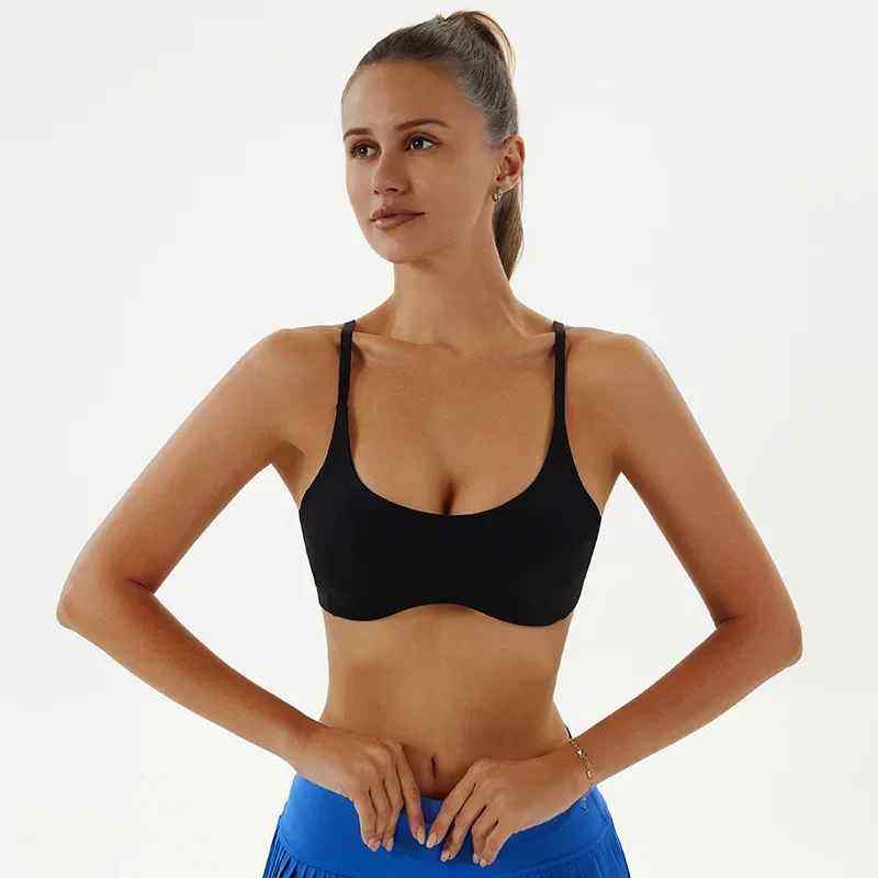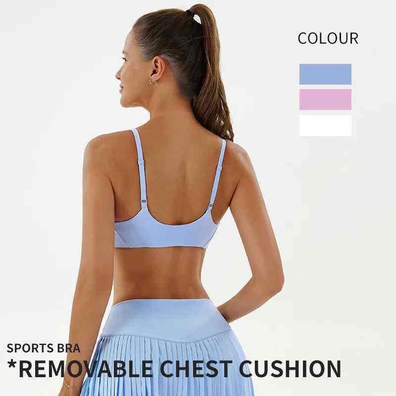 สปอร์ตบราระบายอากาศได้ดีสำหรับผู้หญิงพร้อมแผ่นรองหน้าอกแบบถอดได้สายคล้องไหล่ปรับได้โลโก้ด้านหน้าสำหรับฟิตเนสโยคะยิม