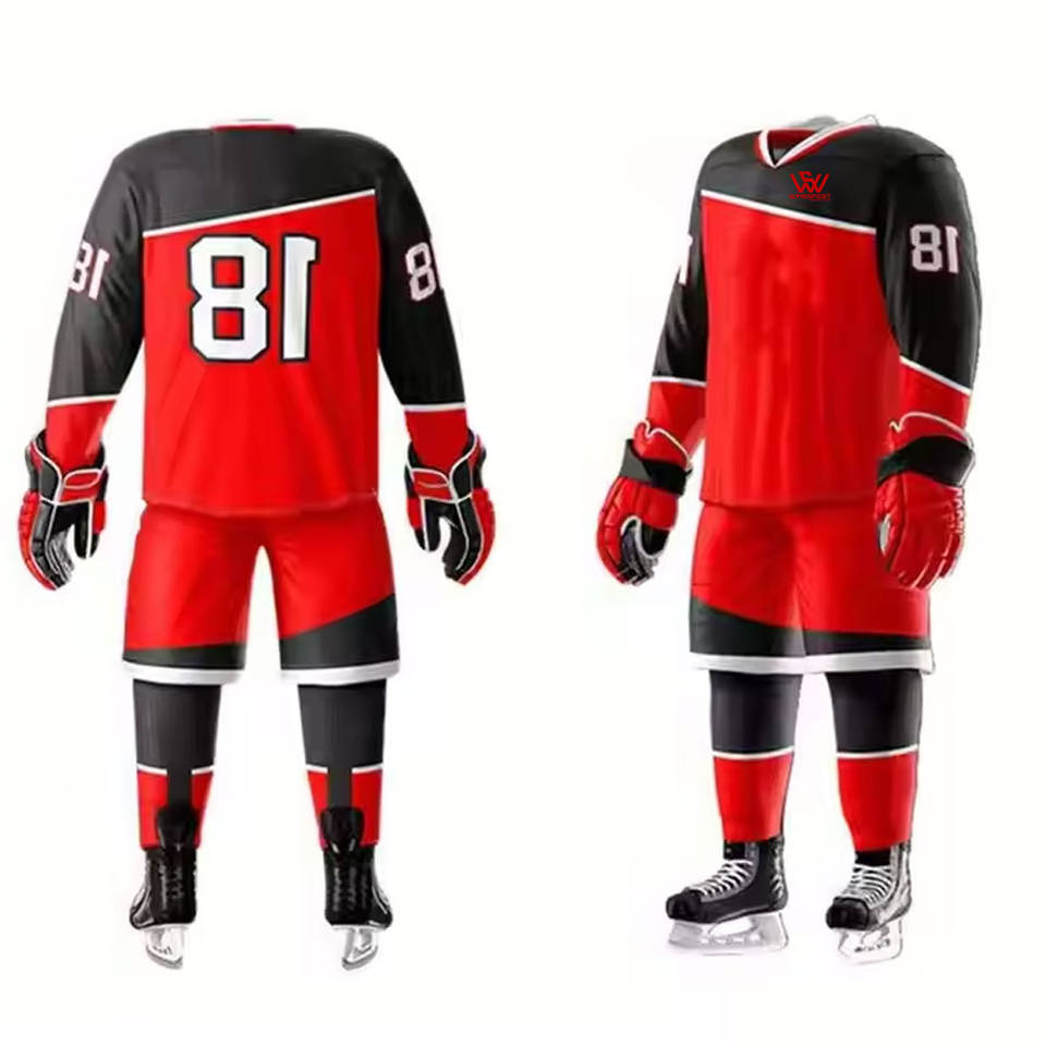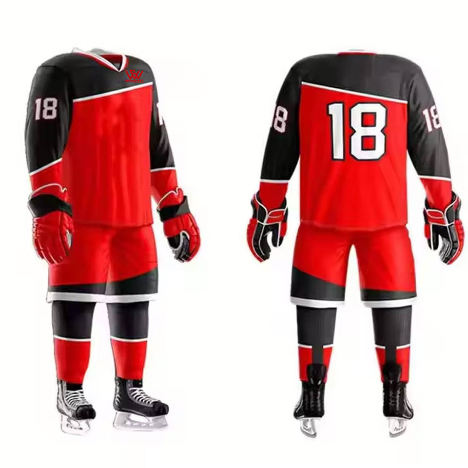 ชุดฮอกกี้น้ำแข็งสีพื้น ราคาขายส่ง คุณภาพสูง โพลีเอสเตอร์ 100% ระบายอากาศได้ดี สีและโลโก้ปรับแต่งได้ ขายดี รุ่นใหม่