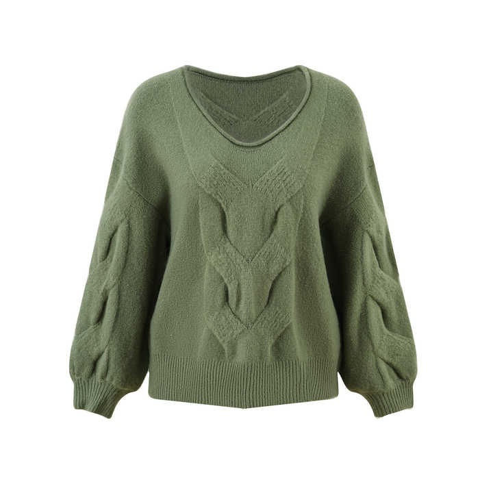 เสื้อสเวตเตอร์สวมหัวทรงหลวมสำหรับผู้หญิงเสื้อสเวตเตอร์ถักระบายอากาศด้านหน้าสีพื้นดีไซน์แฟชั่นฤดูหนาว