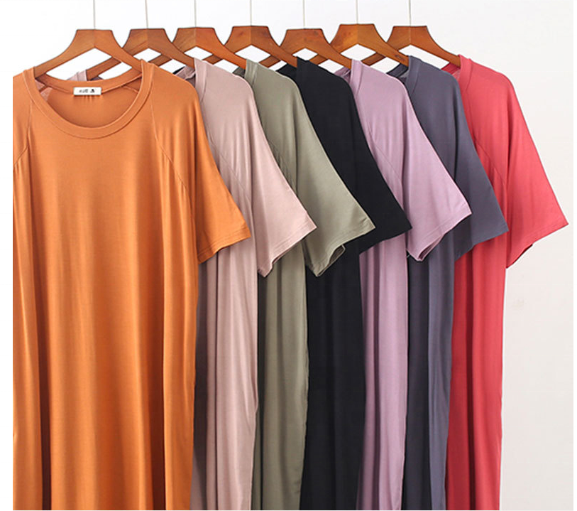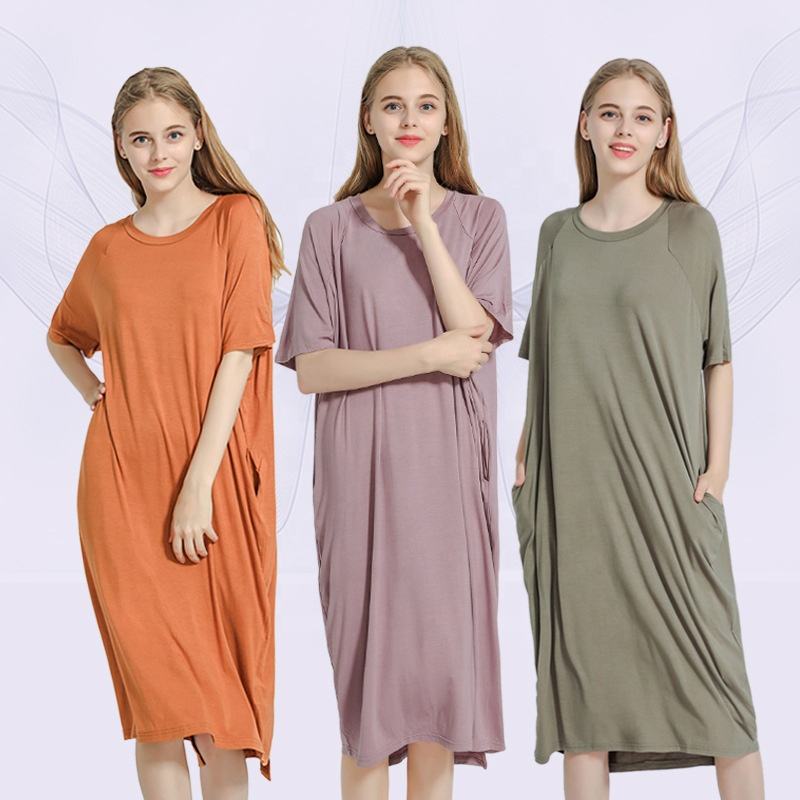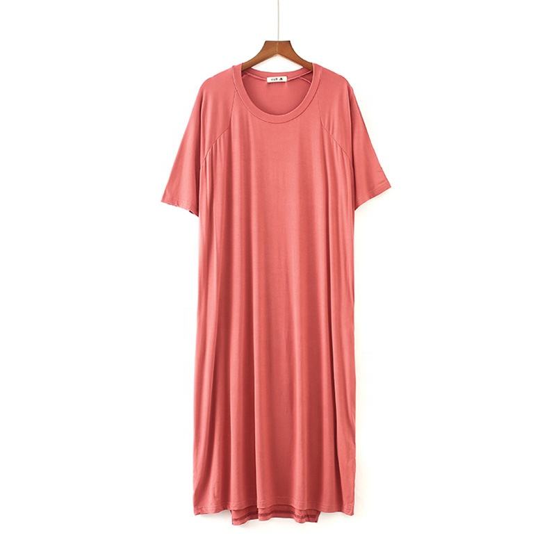เดรสเสื้อคอกลมทรงหลวมสำหรับผู้หญิงเดรสขนาดใหญ่พิเศษของผู้หญิงสีพื้น