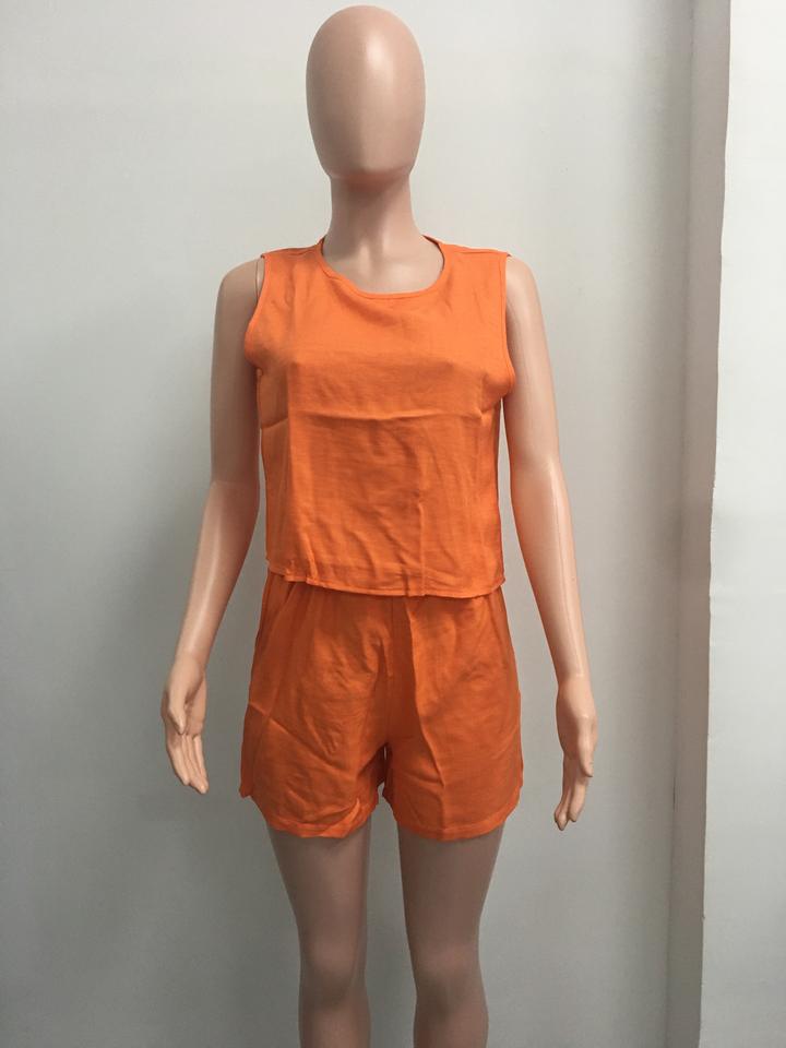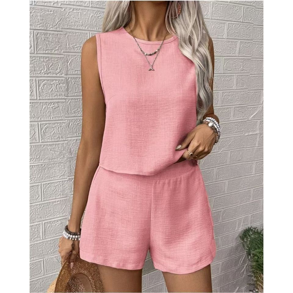 ชุดเซ็ต 2 ชิ้น เสื้อกั๊กแขนกุดสีพื้นสำหรับผู้หญิง กางเกงขาสั้นลำลอง แฟชั่น