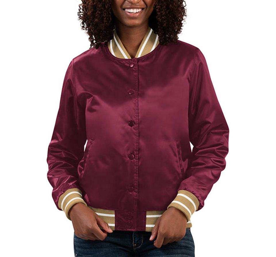 แจ็กเก็ตเบสบอลผ้าซาตินมีซิปสำหรับผู้หญิงแจ็คเก็ตบาสเก็ตบอล