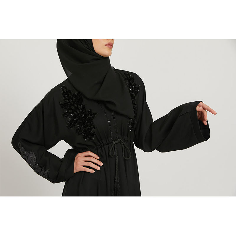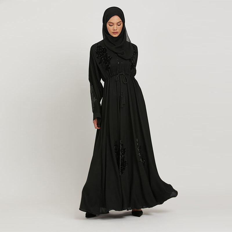 เสื้อคลุมอาบายาชาวมุสลิมชาวตูนิเซียคอเสื้อทำจากผ้าซาติน,ชุดเดรสยาวของอิสลามสีพื้นพร้อมเสื้อผ้าฮิญาบ