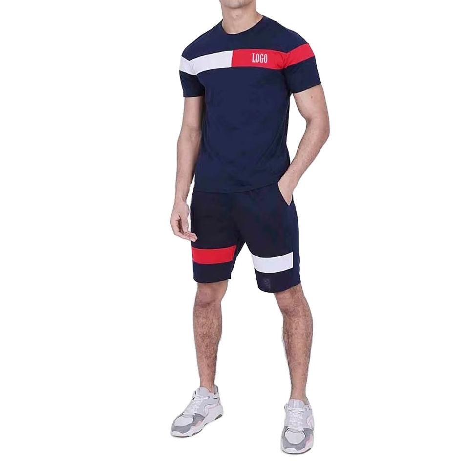 เสื้อยืดทรงสลิมฟิตสำหรับผู้ชายสีพื้น & ชุดสั้นผ้าฝ้าย100% สองกระเป๋าเสื้อยืดแขนสั้นกางเกงขาสั้นสำหรับฤดูร้อน
