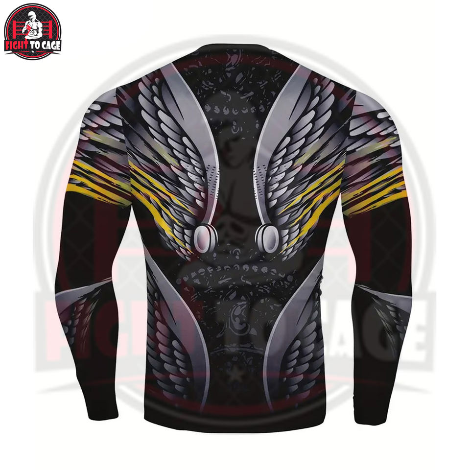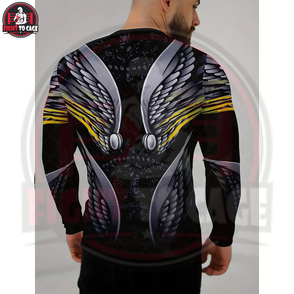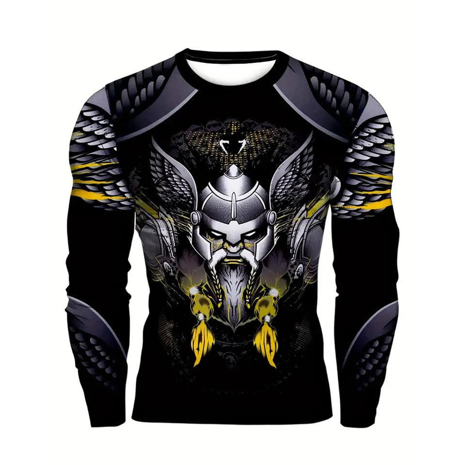 เสื้อรัดกล้ามเนื้อแขนยาวสำหรับผู้ชาย MMA ฟิตเนส ผ้า 220 กรัม แห้งเร็ว ซักแล้ว ใส่สบาย สีพื้น พรีเมียม รับสกรีนโลโก้ตามแบบ