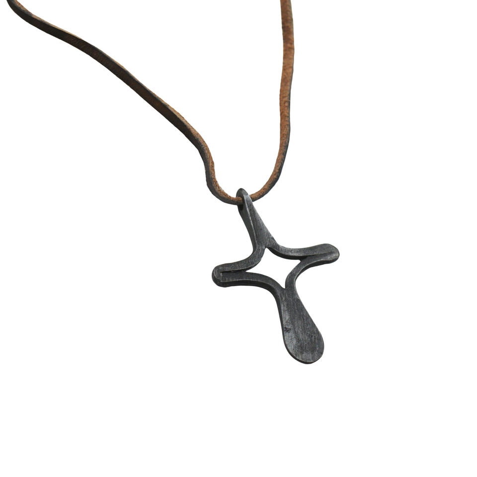 จี้สร้อยคอเหล็กตีขึ้นรูปทำมือสไตล์ไวกิ้งโบราณ ดีไซน์เรียบง่ายแต่ดูดี