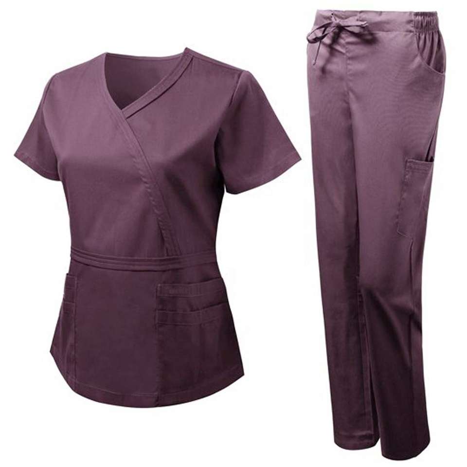 ชุดเครื่องแบบสครับสีล้วนสำหรับทุกเพศชุดพยาบาลชุดเครื่องแบบโรงพยาบาลสวมใส่สบายขนาดโลโก้ออกแบบได้ตามต้องการ