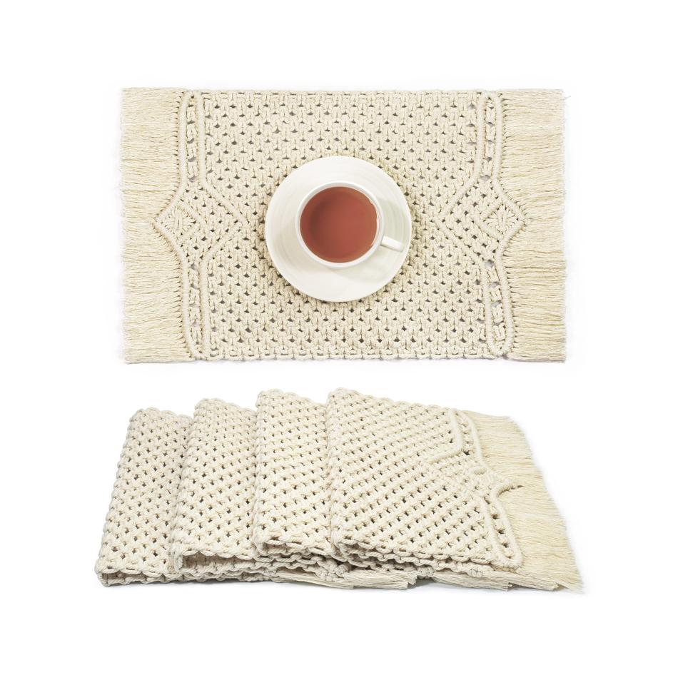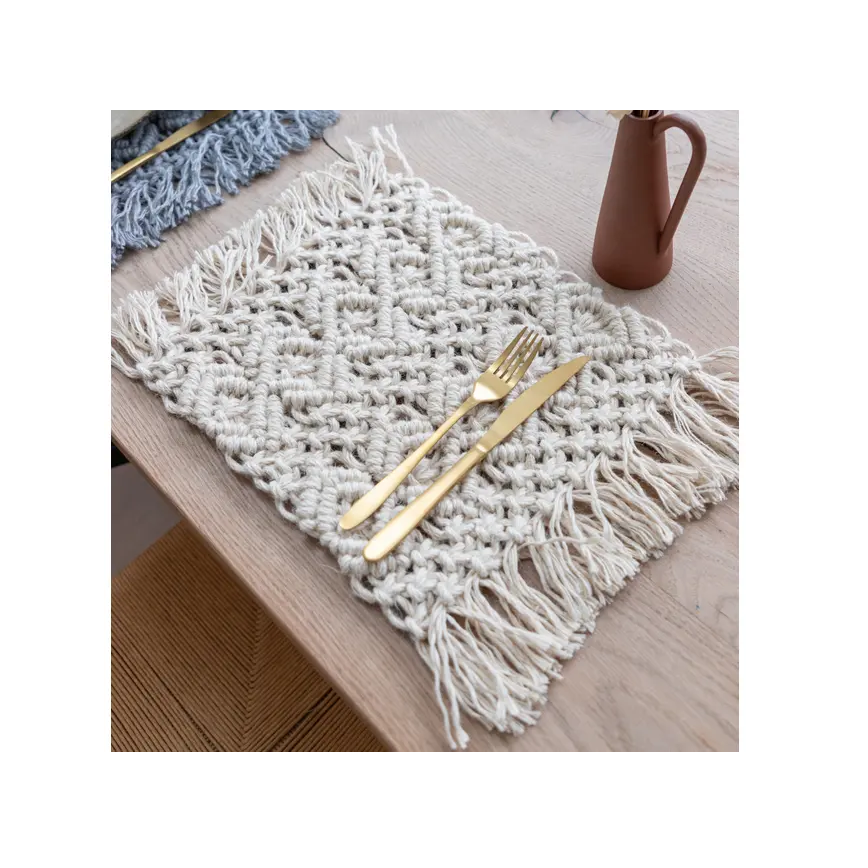 แผ่นรองจานมาคาเม่ใส่น้ำแบบถักทนความร้อนฉนวนกันความร้อนแผ่นกันลื่น