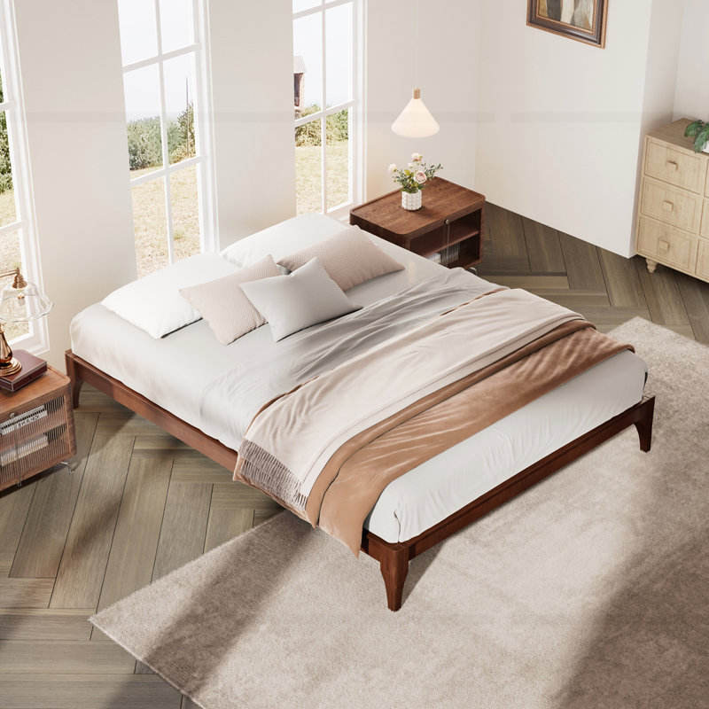โครงเตียงทำจากไม้ไผ่แห้งแข็งแรงทันสมัยสไตล์ญี่ปุ่นเฟอร์นิเจอร์บ้านนุ่มมีให้เลือกสองขนาดควีนไซส์ทำจากไม้โอ๊ค