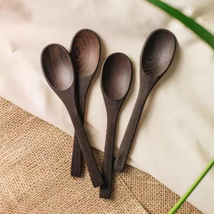 ช้อนไม้มะเกลือแข็งช้อนไม้มะเกลือธรรมชาติ-ช้อนแฮนด์เมดหรูหราสำหรับชากาแฟและเครื่องเทศ