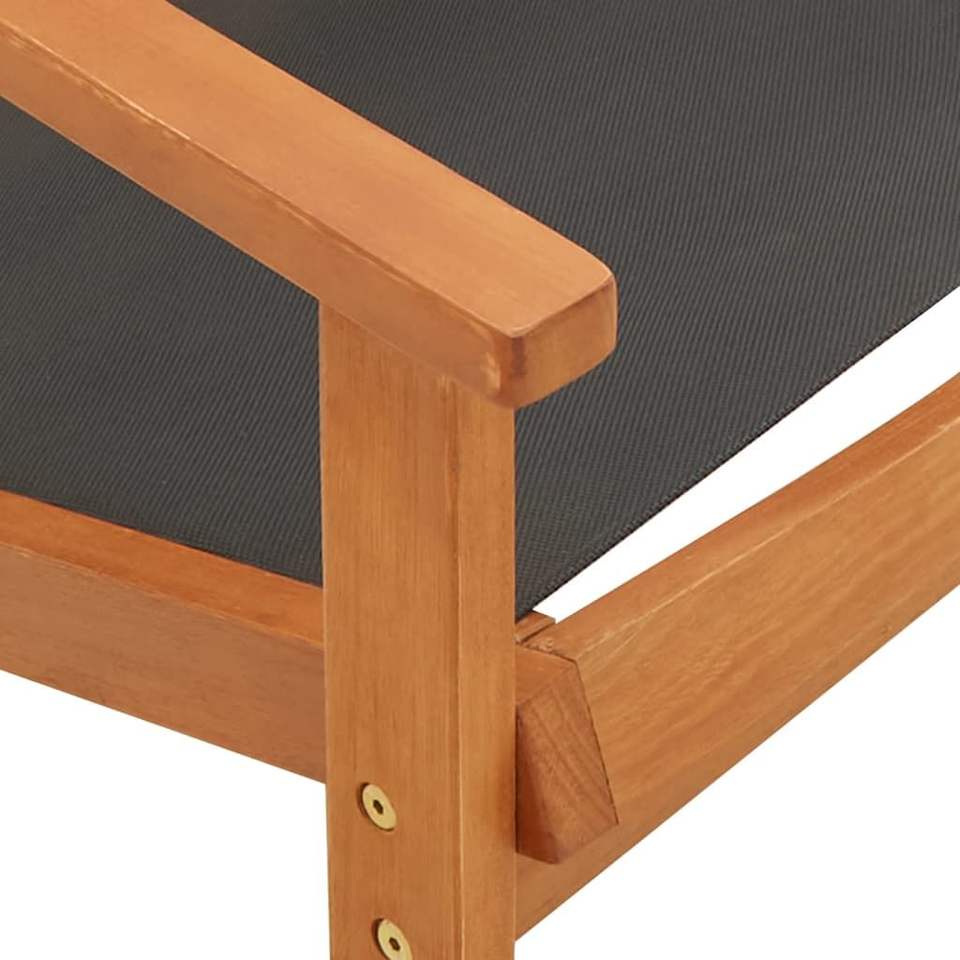Solid Eucalyptus Wood and Black Textilene Garden Chair Natural Wood and Black Fabric Hybrid Design