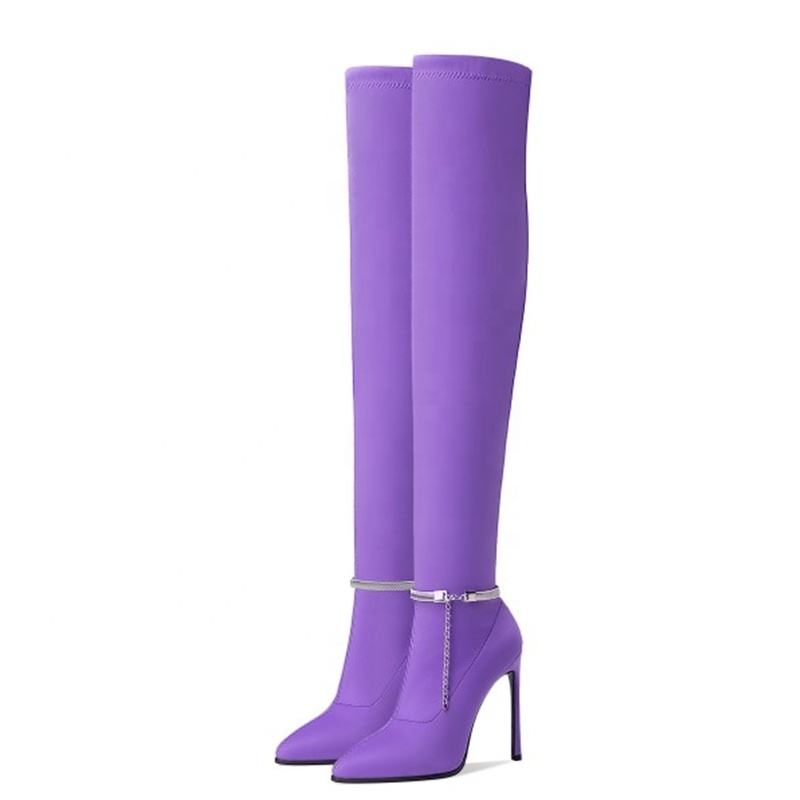 รองเท้าบูทแฟชั่นทรงแข็งแรงสำหรับผู้หญิง ดีไซน์หรูหรา ส้นสูงยาวเหนือเข่า สายรัดข้อเท้า หัวแหลม เหมาะสำหรับฤดูหนาวและฤดูใบไม้ร่วง ไซส์ 43