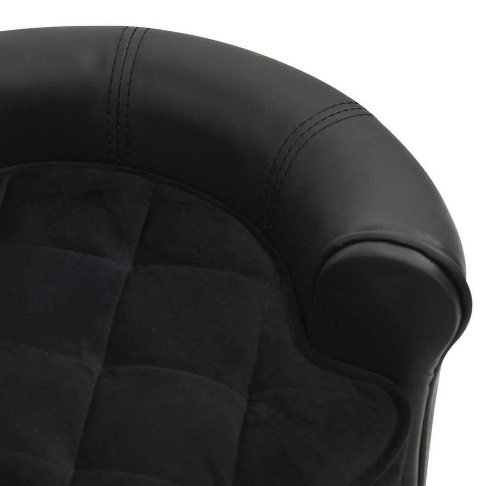 โซฟาสุนัขไม้เฟอร์แข็งแรงหุ้มหนังเทียมสีดำพร้อมเบาะนุ่มสำหรับสัตว์เลี้ยง