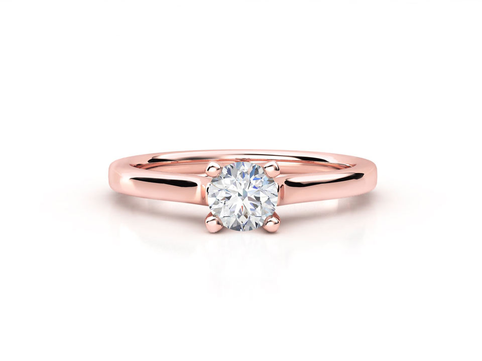 แหวนหมั้นโซลิแทร์สี่ง่ามคลาสสิกสีทอง VVS1ความชัดเจนสำหรับปาร์ตี้งานแต่งงาน10K 14K 18K ที่กำหนดเองได้ผ่านการรับรอง