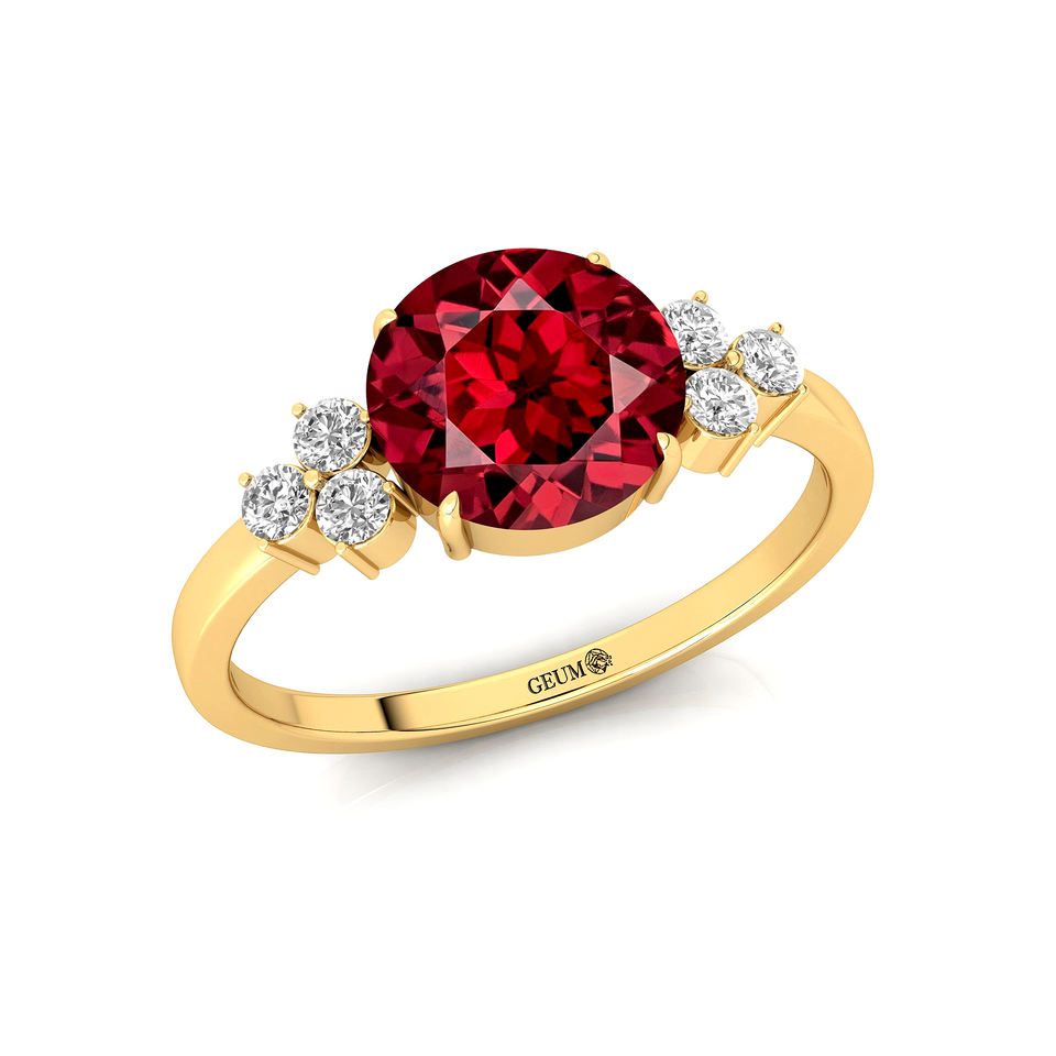 ชื่อสินค้า:แหวนทองประดับเพชรและพลอยโกเมน