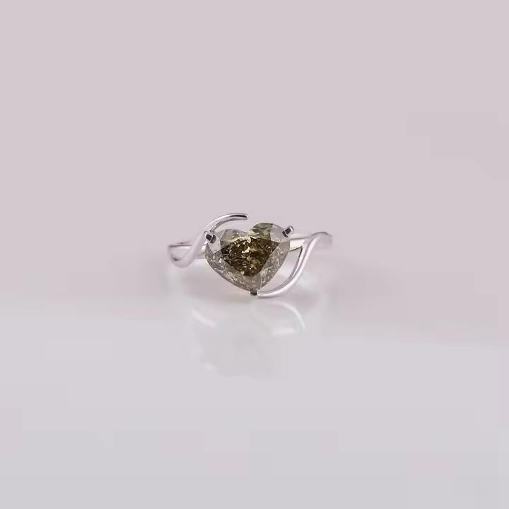 แหวนเพชรแต่งงานทรงหัวใจสีทองล้วนตัดในห้องปฏิบัติการออกแบบได้ตามต้องการ IGI Green SHADOW ของขวัญเพชรสำหรับวันเกิดของเธอ