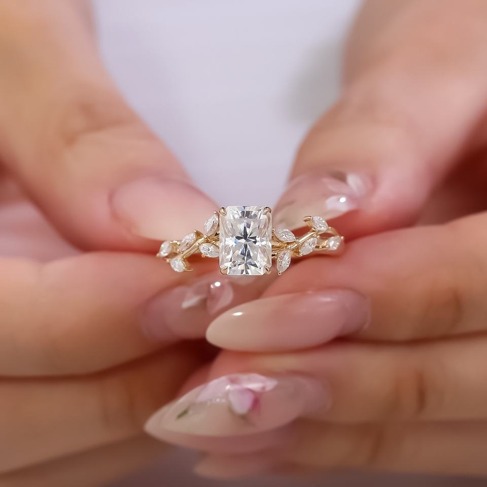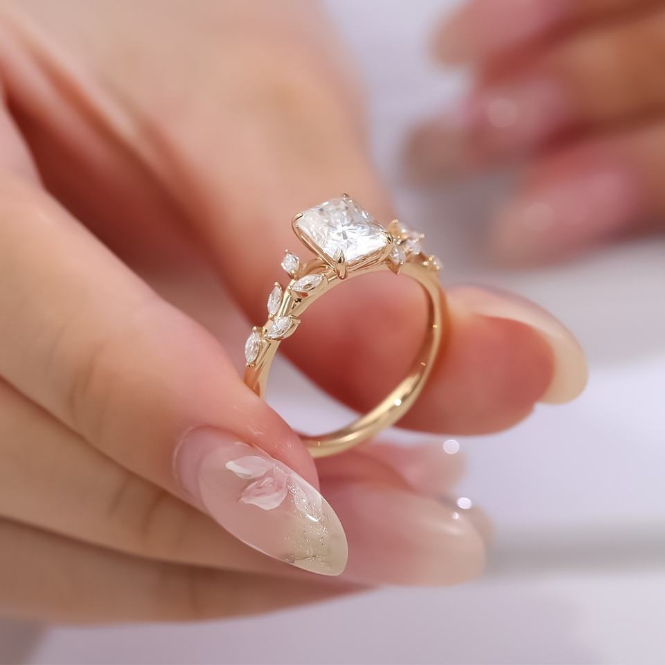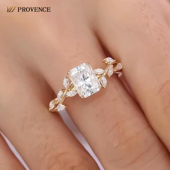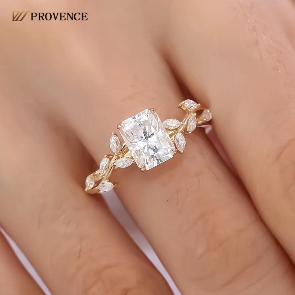 เครื่องประดับทองคำแท้ 18k 14k ทรง Radiant Cut DEF VVS มอยส์ซาไนต์ แหวนแฟชั่นทำมือ แหวนแต่งงาน แหวนหมั้นทองคำสำหรับผู้หญิง