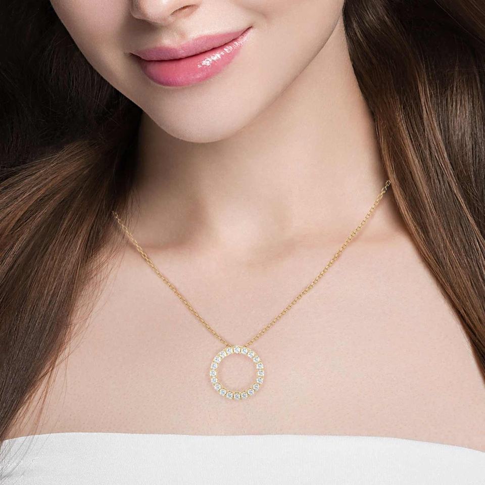 จี้รูปวงกลมเปิดติดเพชรสีทองธรรมชาติแบบเรียบง่ายสร้อยคอแบบโซ่ร้อยเป็นพวงสวยงามเหมาะเป็นของขวัญวันครบรอบปีที่สมบูรณ์แบบสำหรับเธอ