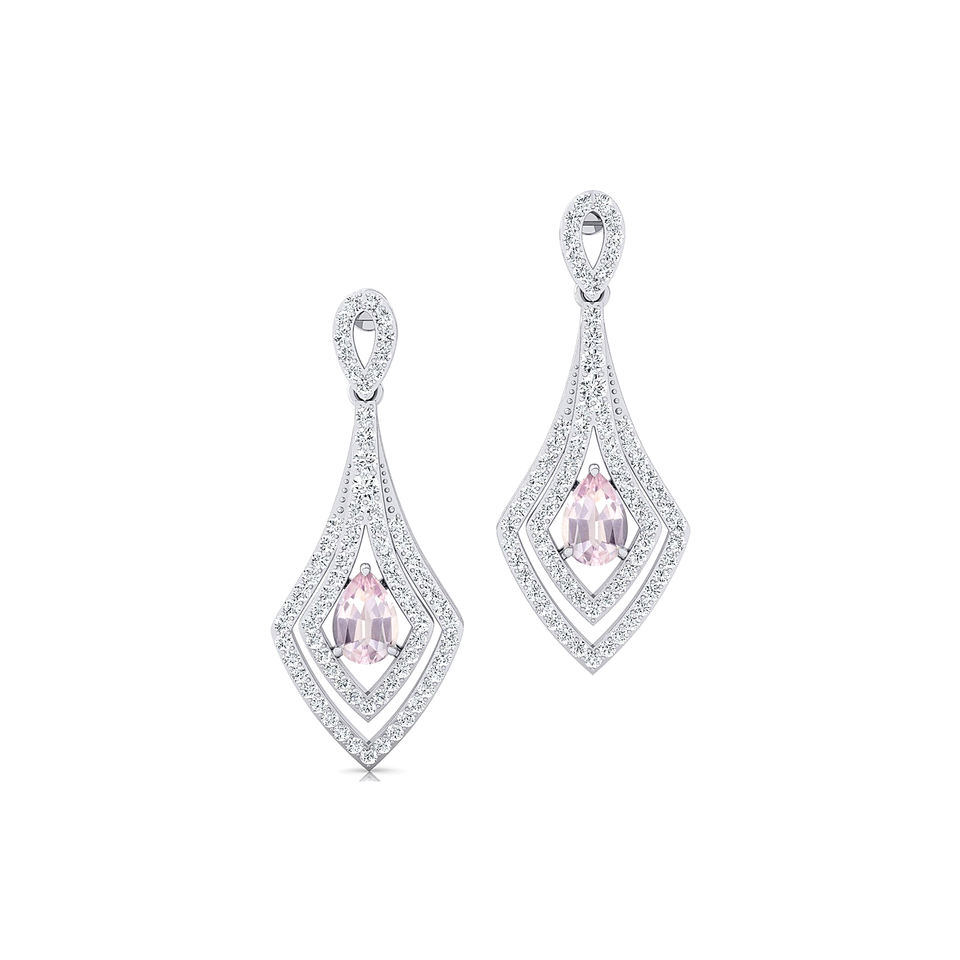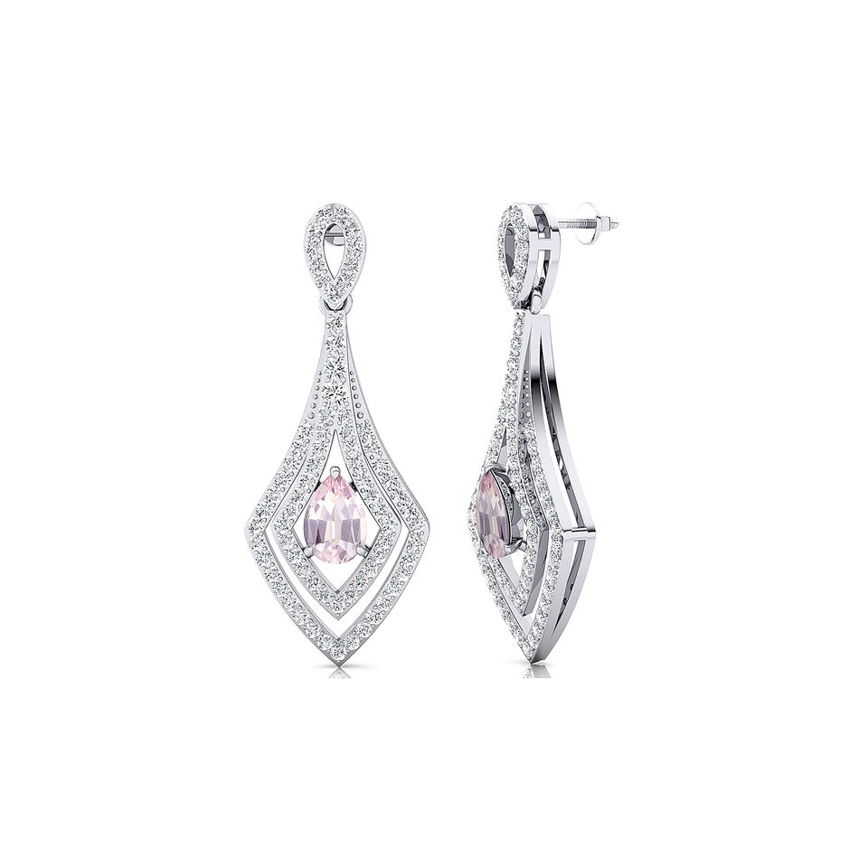 ต่างหูเพชรมอร์แกไนท์สีทองและเพชรแท้แบบห้อยดีไซน์หรูหราของขวัญวันวาเลนไทน์ขายส่ง